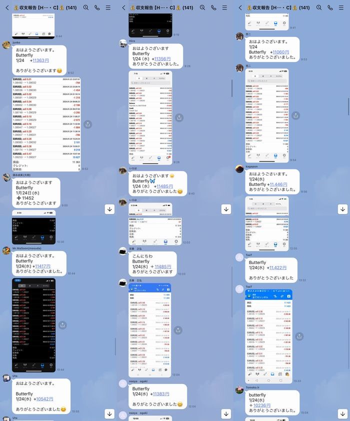 そのグループでは実際にButterflyを使用している皆さんの収支報告が日々閲覧できます