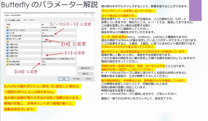 Butterflyのパラメーター解説なども全てマニュアルで詳細に説明していますのでご安心下さい
